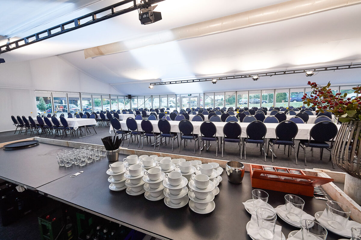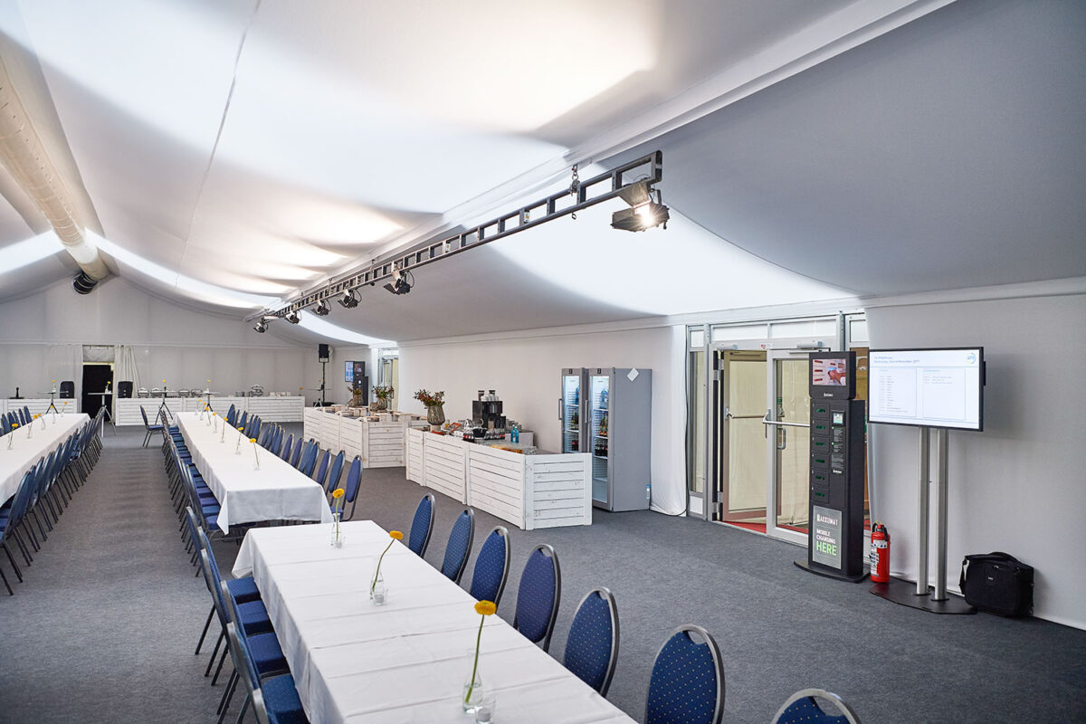 Dank der flexiblen Bauweise lassen sich verschiedene Bereiche wie Garderobe, Bar, Catering oder VIP-Zonen individuell abtrennen. So entsteht eine optimale Raumstruktur, die perfekt auf den Ablauf Ihrer Veranstaltung abgestimmt ist.