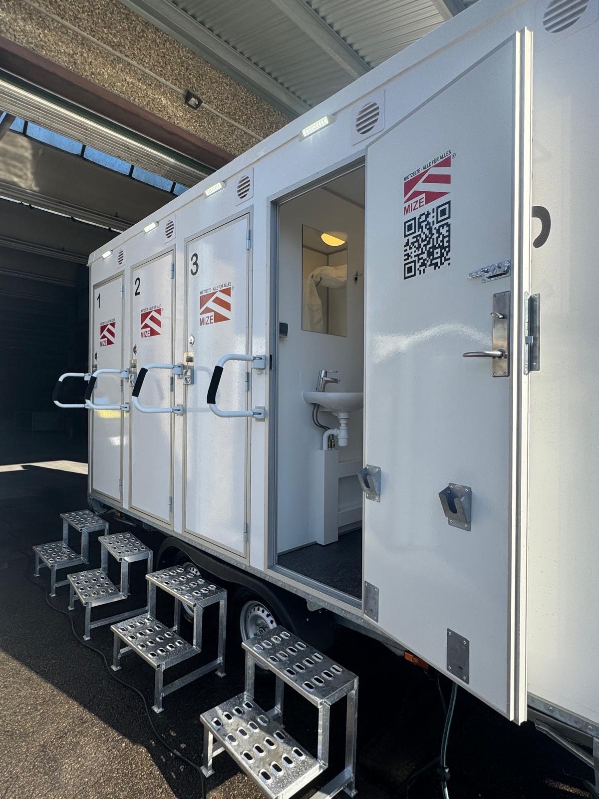• 2-stufige Treppe vor jeder Eingangstür, während der Fahrt an der Innenseite der Tür einzuhängen