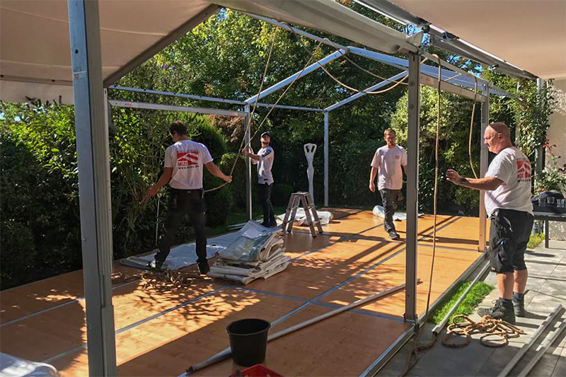 Wir unterstützen Sie bei der Planung, Austattung und Montage Ihres Zelts.